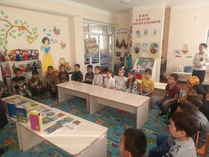 2021-jıl 30-noyabr kúni, Taqıyatas rayonı Málimleme-kitapxana orayınıń Málimleme-kommunikaciya texnologiyası hám sanlastırıw xızmeti qánigesi A.Vaysova tárepinen, Taqıyatas rayonı Mektepke shekemgi bilimlendiriw bólimine qaraslı 2-sanlı Mektepke shekemgi bilimlendiriw shólkeminiń 1- mektepke tayarlaw toparı balalarına balalardı kitapxanlıqqa qızıqtırıw maqsetinde «Meniń súygen ertek qaharmanım» atamasında balalardıń jasına qarap kitaplar tańlap alınıp, súwretli kitaplar menen tanıstırıldı,sonıń menen birge «Bo’ri bilan mergan» ertegi aytıp berildi. «Bo’ri bilan mergan» ertegin aytıp beriw dawamında, ertektiń mazmunı haqqında balalar menen sáwbet qılınıp, ertek qaharmanları is háreketleri haqqında túsinik berildi. Bunda, balalar jaqsı qatnasıp, ertektegi mergenniń bórini ushıratıp qalıwı hám onı qolǵa kiritiw ushın is-háreketleri, ǵarrınıń bórini ólimnen qutqarıp qalıwı, bóriniń bolsa basınan keshirgenleri boyınsha túsinikler berildi.