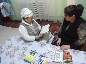 2022-2026 yillarga mo’ljallangan Yangi O’zbekistonning taraqqiyot strategiyasini «Insonga e’tibor va sifatli ta’lim» yili da amalga oshirishga oid davlat dasturi ijrosi yuzasida NAZORAT REJASIning 72-maqsad: Aholiga axborot-kutubxona xizmatini ko’rsatishni yanada rivojlantirish, kitobxonlikni keng ommalashtirish hamda “Kitobsevar millat” umummiylik g’oyasini ro’yobga chiqarishning 264-265 bandlari bo’yicha, Taxiatosh tumani Axborot-kutubxona markazi chora-tadbirlari rejasi asosida “Mehr kutubxonasi” loyihasi doirasida 25- yanvar kuni Axborot-kutubxona markazi xodimlari «Taxiatosh MFY»da istiqomat qiluvchi Sabirova Rabig’a opa Xudaybergen qiziga Axborot-bibliografiya xizmati rahbari J.Kadirbayeva tomonidan fondimizdagi adabiyotlardan A.L.Qozonchining “Saodat asri qissalari” va musannif: B.Jo’rabek o’g’lining “Islomda ota-ona va farzand haqlari” kitoblari, Jollibayev Hursand Quralbay o’g’liga Abonement va foydalanuvchilarga xizmat ko’rsatish xizmati rahbari A.Tureniyazova tomonidan Ch.Aytmatovning “Oq kema”, Cho’lponning “Kecha va kunduz”, O.Yoqubovning “Ulug’bek xazinasi”, O’.Hoshimovning “Ikki eshik orasi” audio disklari taqdim etildi.