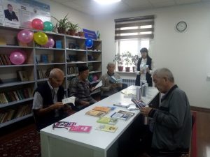 Axborot-kutubxona markazi Abonementlar va foydalanuvchilarga xizmat ko’rsatish xizmati mutaxassisi N.Mamutova tomonidan sanatorida dam olayotgan nuroniy otaxonlar va onaxonlar uchun yangi adabiyotlar olib borildi. Shuning bilan birga, dam olayotgan nuroniylarni kitobga qiziqtirish, vaqtlarini mazmunli o’tkazish maqsadida yangi adabiyotlardan kitoblar ko’rgazmasi tashkillashtirilib, N.Mamutova tomonidan, “Oltin silsila”, «Avlodlar davoni», «Humoyun va Akbar» va boshqa kitoblar haqida ma’lumotlar berilib o’tildi va ko’rgazmadagi kitoblarni o’qib ko’rishlari uchun tavsiya etildi. Undan so’ng, nuroniylar ko’rgazmadagi kitoblar bilan tanishib chiqdi. «Taxiatosh» sanatorisi dam oluvshisi Hayatov Rozim ota va Xusanov Po’lat otalar o’qigan kitoblari, o’zlarini qiziqtirgan asarlar va qahramonlari haqida so’zlab berdi va kitoblarga qiziqishlari, ko’rgazmadagi kitoblarni ham o’qib ko’rishlarini aytib o’tdi.