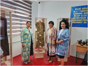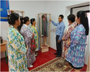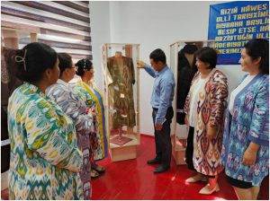 Muzey ilmiy hodimi Abdijamilov Jaxongir tomonidan muzey ekspanatlari qatoridan joy olgan adras, atlas va beqasam matolaridan tikilgan milliy kiyimlar haqida ma’lumotlar berilib o‘tildi.