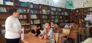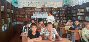 Davra suhbatiga 7-sonli maktabning kitobxon o’quvchilari va kutubxonachisi K.Soegbaeva qatnashdi. Suhbat davomida, Axborot-kutubxona markazining Axborot-bibliografiya xizmati xodimi J.Kadirbaeva kitobxonlarga, Kitob, kitobxonlik – arab so‘zidan olingan bo‘lib, kitob – yozaman, yozish, kitobxonlik – diqqat bilan o‘qish, o‘rganish ma’nosini bildirishini shuningdek, olimlarning aytishicha inson har qanday ma’lumotni qobul etishida: 17% eshitish, 13% sezish, 70% ko‘rish orqali qobul qilishi, asrlar davomida kutubxonalarning bosh maqsadi bilimli jamiyatni qurishdan iborat bo‘lib kelgan bo‘lsa, kitob bilimning bosh quroli bo‘lib qolishi, kitoblar asrlar davomida uch bosqichni bosib o‘tganligi ular 1. Papirus, 2. Pergament, 3. Qog’ozli bosqich bo‘lsa, 4. Bizning davrimizda kitoblar to‘rtinchi, ya’ni elektron bosqichni o‘tkazmoqda deya kitoblarning yaratilish tarixi haqida ma’lumotlar berib o‘tdi.