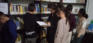 Sayohat davomida, Axborot-kutubxona markazining Abonementlar va foydalanuvchilarga xizmat ko‘rsatish xizmati rahbari A.Tóreniyazova tomonidan Axborot-kutubxona markazi haqida, undagi adabiyotlar, kutubxonaga a’zo bo‘lish tartibi, foydalanuvchilar qoidalari borasida ma’lumotlar berilib o‘tildi.
