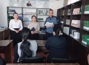 Joriy yilning, 6-fevral kuni Taxiatosh tumani Axborot-kutubxona markazida “Inson huquq va erkinliklari kafolatlari” mavzusida davra suhbati tashkillashtirildi. Davra suhbatini Taxiatosh tumani Axborot-kutubxona markazi mutaxasissi B.Yusupova olib bordi. Davra suhbatida Taxiatosh tumani IIB JXX HPB profilaktika inspektori podpolkovnik U.Tlewmuratov mehmon sifatida ishtirok etdi. Suhbatda Taxiatosh tumani Axborot-kutubxona markazi xodimlari qatnashishdi.B.Yusupov o’z so’zi bilan boshlab bergach so’z navbati podpolkovnik U.Tlewmuratovga berildi va u O’zbekiston Respublikasi Prezidentining 2025-yil 3-yanvar kungi “2025-yilda Respublika mahallalarida xavfsiz muhitni yaratish va huquqbuzarliklarning barvaqt oldini olish tizimi samaradorligini yanda oshirish bo’yicha chora tadbirlar to’g’risida”gi PQ 1-sonli Qarori bilan tanishtirib o’tdi va yanada jinoyatchilikka qarshi kurashish uni oldini olish, olib borilayotgan ish jarayonlaridan va qolaversa inson huquqlari va erkinliklari haqida ta’kidlab o’tdi.