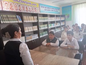 Davra suhbatida Axborot-kutubxona markazining faol kitobxonlari ishtirok etdi. Davra suhbati davomida A.To’reniyazova kitobxonlik haqida, hozirgi kunda kitobga bo’lgan talabning ortib borayotganligini va yoshlarning kitobxonlikka qishiqishi haqida aytib o’tdi, shuningdek u kitob – insonning erkin fikrlashi, dunyoqarashining kengayishi, aqlan yetuk bo‘lishi, ma’naviyatining shakllanishida asosiy o‘rinni egallashi, kitob o‘qigan insonning aqli charxlanib, ma’naviyati boyib yetuklik sari ildamlayverishi, kitob o‘qimagan insonning ongi esa ma’naviy qashshoqligicha qolaverishi va boshqalar to‘g‘risida ta’kidlab o‘tdi. Davra suhbati davomida o’quvchilar kitobxonlar tomonidan savollar berilib xodimimiz tomonidan javoblar berildi.Davra suhbati so’ngida Axborot-kutubxona markazi bo’ylab sayohat bo’lib o’tdi.