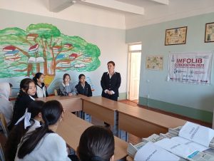 Joriy yilning 14-noyabr kuni, Axborot-kutubxona markazi Abonomentlar va foydalanuvchilarga xizmat ko’rsatish xizmati mutaxassisi N.Mamutova tomonidan Taxiatosh tumani 10-sonli maktab kutubxonasida “INFOLIB O‘ZBEKISTON–2025” XIV Milliy Axborot- kutubxona haftaligi doirasida Maktabgacha va maktab ta’limiga qarashli 8-sonli maktab kutubxonasida yosh kitobxonlar bilan birgalikda “Yangi avlod kitobxonlari” mavzusida davra suhbati tashkillashtirildi. Suhbatni Axborot-kutubxona markazi Abonomentlar va foydalanuvchilarga xizmat ko’rsatish xizmati mutaxassisi A.Abiyeva olib bordi. Suhbati 8-sonli maktab kutubxonachisi I.Aralbaeva ochib berdi. U o’z so’zida. har bir o‘qilgan asar — bu yangi dunyo, yangi g‘oya, yangi tajriba ekanligini, kitoblar orqali biz o‘tgan avlodlar bilan muloqot qilishimizni, buyuk mutafakkirlarning fikrlari bilan tanishishimiz kerakligini, kelajak uchun o‘z yo‘limizni topishimiz kerakligini ta’kidlab o’tdi.