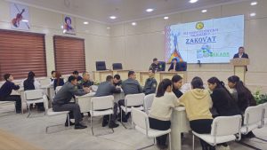 O’yinni Taxiatosh tumani Axborot-kutubxona markazi Abonomentlar va foydalanuvchilarga xizmat ko’rsatish xizmati rahbari B.Yusupova olib bordi. Zakovat o’yinida hakamlar ha’yati a’zosi sifatida Taxiatosh tumani Axborot-kutubxona markazi Abonomentlar va foydalanuvchilarga xizmat ko’rsatish xizmati mutaxassisi N.Mamutova va 99651-harbiy qism xizmat boshlig’i B.Buxariev baholab bordi.