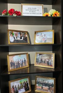 Fotogalereyalar kutubxonalarning alohida burchaklarida tashkil etilgan bo‘lib, tadbirlar, tanlovlar va viktorinalar doirasida faol qatnashgan kitobxonlar faxriy yorliqlar, kitob sovg‘alari va esdalik sovg‘alari bilan taqdirlangan lavhalar fotogalereyadan joy olgan.