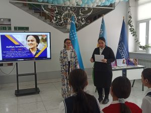 Tadbir bahor faslining malikasi, she’riyat gulshanning bulbuli Zulfiyaxonim Isroilovaning tavallud topgan kunlarini nishonlashga bag’ishlandi. Tadbirni Ixtisoslashtirilgan maktabning kutubxona mudiri Dilfuza Xalbaeva o‘zining samimiy fikrlari bilan ochib berdi.