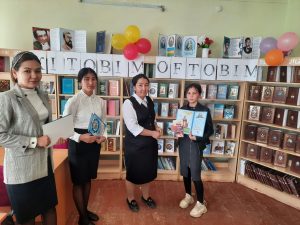 Taxiatosh tumani Axborot-kutubxona markazi va tuman Xalq ta’limi bo’limi bilan birgalikda, yoshlar ma’naviyatini rivojlantirish, yoshlarni kitob o’qishga qiziqtirish maqsadida qo’shma chora-tadbirlar rejasi ishlab chiqilib, ushbu rejaning ijrosini ta’minlash maqsadida 2022 yilning 30-mart sanasida Taxiatosh tumani Axborot-kutubxona markazining, Axborot- kommunikatsiya texnologiyasi va raqamlashtirish xizmati mutaxassisi A.Vaysova tomonidan tumanimizdagi 4 sonli umumta’lim maktabida Qoraqalpoq xalq yozuvchisi Mirzag’aliy Daribaevning “Mıńlardıń biri” kitobi bo’yicha tanlov o’tkazildi. Tanlovga, tuman 4 sonli umumta’lim maktabi kutubxonachisi Z.Orinbaeva, A.Xasanova, maktab targ’ibotchisi X.Yusupova, Ma’lumot-bibliografiya xizmati mutaxassisi D.Utemuratova, Axborot-kutubxona markazi Axborot-kommunikatsiya texnologiyalari va raqamlashtirish xizmati rahbari M.Kadirovlar ishtirok etdi. A.Vaysova tomonidan, 2021-yilda Nukus “Bilim” nashriyotidan nashrdan chiqarilgan Qoraqalpoq xalq yozuvchisi Mirzag’aliy Daribaevning “Mıńlardıń biri” kitobi bo’yicha tanlov bosqichlari, shartlari haqida tushintirildi. Ishtirokchi o’quvchilar maktabning har hil siniflaridan iborat 11 o’quvchi tanlovda faol ishtirok etdi. Tanlov 2 bosqichdan iborat bo’lib, 1-bosqich har bir ishtirokchining qoraqalpoq xalq yozuvchisi Mirzag’aliy Daribaevning “Mıńlardıń biri” kitobini to’liq o’qiganligini aniqlash maqsadida 20 daqiqa davomida bayon yozib berishlari, 2-bosqich ushbu kitobdan savollar berilib javob qaytarish kerakligi aytib o’tilib, tanlov shu tarzda o’tkazildi. Tanlovda kitobxon yoshlar faol ishtirok etib, g’olib bo’lgan ishtirokchilar M.Kadirov tomonidan e’lon qilindi va 10a-sinf o’quvchisi Qurbanbaeva Mirxan 1-o’rinni egallagani, 8v-sinf o’quvchisi Jalg’asbaeva Gulzar 2-o’rinni egallagani, 9v-sinf o’quvchisi Begjanova Maryash 3-o’rinni egallagani aytib o’tildi. G’oliblarga Axborot-kutubxona markazi tamonidan “Fahriy yorlig’i” va har hil baadiy kitoblar sovg’aga berildi.